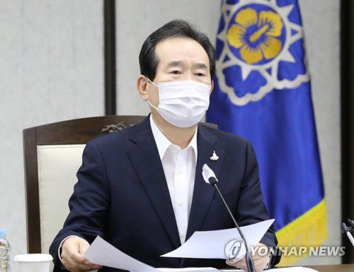 국정현안조정회의에서 발언하는 정세균 총리 |
