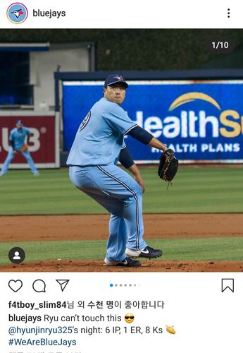 류현진 활약 조명한 토론토 블루제이스 인스타그램 |