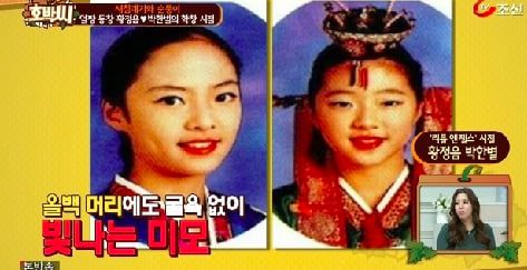 뿐만 아니라 MBC ‘해피타임’의 ‘스타열전’코너에서는 황정음이 초등학교 3학년때부터 ‘리틀엔젤스’ 단원으로 활동하던 당시 평양공연에 참석했는데 이때 MBC ‘뉴스데스크’와 인터뷰를 진행했다. 지금과 다를 것 없는 예쁜 미모가 눈길을 끈다.(사진=MBC 영상캡처)