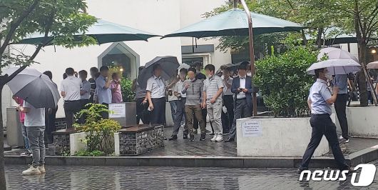 흡연부스 입구쪽에서 담배를 피우던 30대 장모씨는 코로나19가 걱정되지 않느냐는 질문에 "그래서 흡연부스 안에 안 들어가고 밖에서 피우고 있다"고 답했다. 근처에 있던 황모씨(44)도 최대한 다른 사람들과 거리를 두고 담배를 피웠다고 했다. 그러나 흡연부스 바깥에 서 있는 사람들의 간격도 1m가 채 되지 않았다.