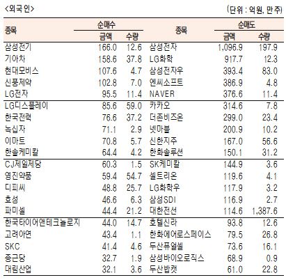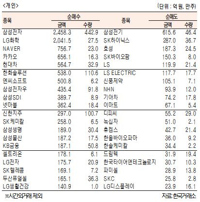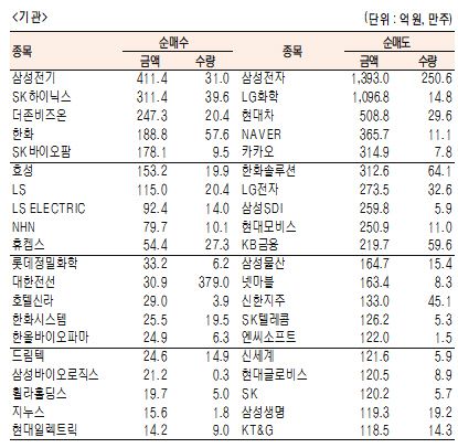 [표]유가증권 기관·외국인·개인 순매수·도 상위 종목(9월 4일)
