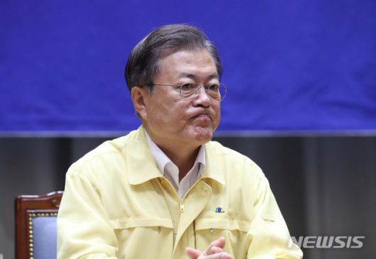 [서울=뉴시스]박영태 기자 = 문재인 대통령이 21일 서울 중구 서울시청에서 열린 신종 코로나바이러스 감염증(코로나19) 서울시 방역 강화 긴급점검 회의에 참석해 발언을 마친 뒤 굳은 표정을 보이고 있다. 2020.08.21. since1999@newsis.com |