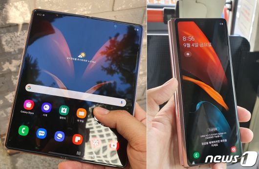 삼성전자 갤럭시Z폴드2. 내부 메인 디스플레이(왼쪽)과 외부 디스플레이 2020.09.04. /뉴스1 © News1 김정현 기자 |