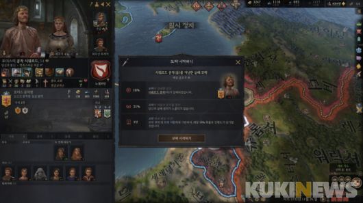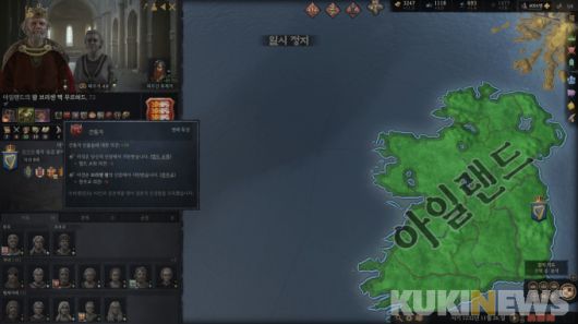 우선 기자가 해본 플레이에 대해 말해보겠다. 아일랜드의 한 영주를 골랐다. 1대 영주로는 다른 영지를 정복하기 위해 전투 위주로 게임을 진행했다. 막장 플레이의 시작은 2대 군주부터 시작됐다. 아일랜드 통일을 눈앞에 앞두고 있는 시점에 사촌형제인 옆 지역 영주의 세력이 매우 막강했다. 동맹도 탄탄했고, 군사력도 뛰어났다.
