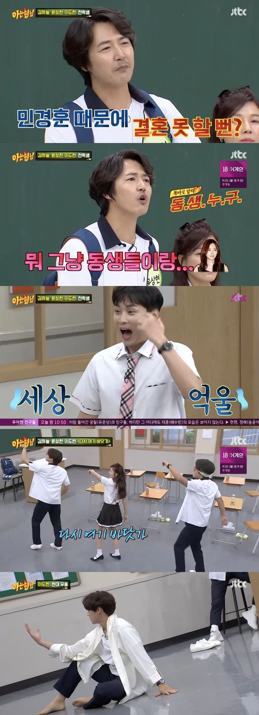 윤상현은 "민경훈을 신경 안 써도 되겠구나 하는 사건이 있었다. '동상이몽'에 나가게 된 후에 민경훈에게 전화가 왔다더라. '동상이몽'에도 나오고 '너는 내운명'에도 나오냐. 두 개나 나오냐고 했다더라"며 "얘는 바보구나 싶었다. 이때까지 신경 쓴 게 너무 아까웠다. 되게 똑똑한 줄 알았다"고 말해 폭소케 했다.