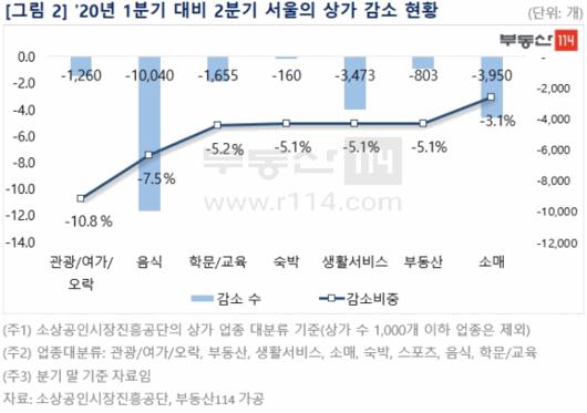 여경희 부동산114 수석연구원은 "2분기에 이어 3분기에도 서울의 상가 수는 감소세를 이어갈 것으로 예상된다. 8월 중순 이후 코로나 재확산에 따라 다중이용시설의 운영이 한시적으로 중단되거나 제한돼, 매출에 타격이 불가피해졌기 때문이다"면서 "이들을 위한 다방면의 지원책이 필요해 보인다"고 전했다.