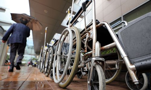 전공의들이 집단 휴진을 이어가고 있는 7일 오전 서울 서초구 가톨릭대학교서울성모병원 앞에 휠체어가 놓여져 있다. 뉴스1 |