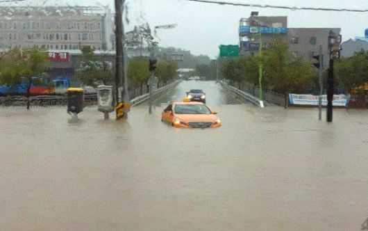 7일 강원 동해안에 태풍 하이선의 영향으로 많은 비가 내리면서 강릉시 도심 도로가 침수되는 피해가 발생했다. 독자 제공