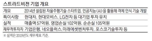 스트라드비젼은 포스텍 출신 전봉진 연구소장과 선후배가 모여 2014년 설립했다. 이듬해 인텔에 팔린 스타트업 '올라웍스'의 공동 창업자 김준환 대표를 영입하며 기반을 다졌다. 스트라드비젼은 인공지능(AI) 연구개발에 중점을 둔 스타트업이다. 자율주행 자동차는 카메라를 장착해 주변 사물을 인식하고 장애물을 피하는데, 스트라드비젼은 이 과정에 필요한 사물 인식 소프트웨어(SVNet)를 개발했다.