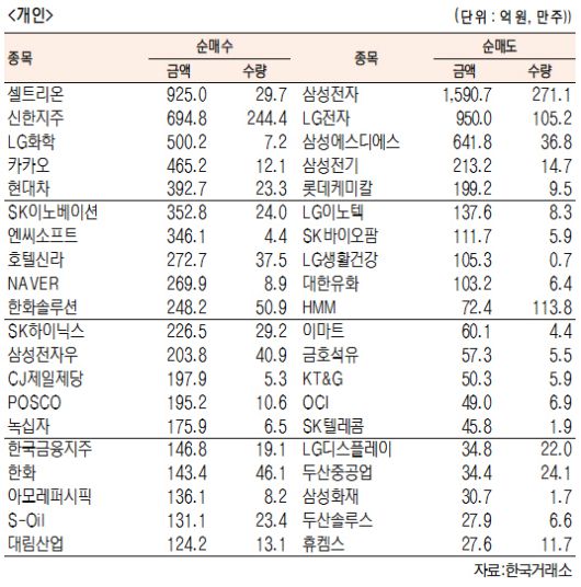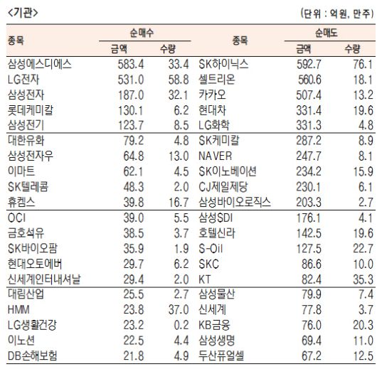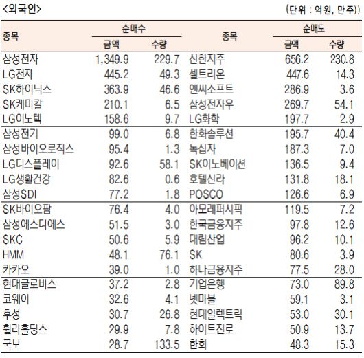 [표]유가증권 기관·외국인·개인 순매수·도 상위종목(9월 9일-최종치)