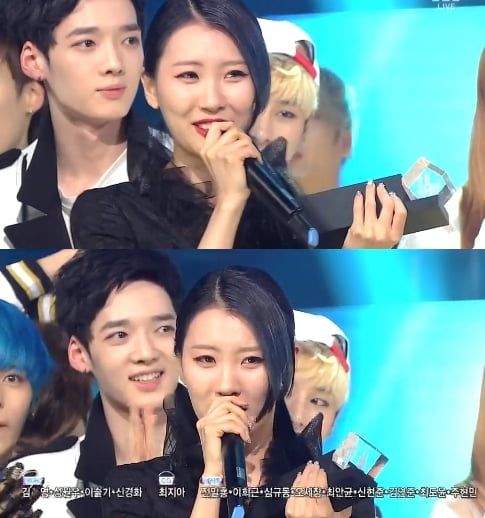 2014.03 솔로곡 ‘보름달’로 음악방송 첫 1위를 차지한 선미가 감격의 수상소감을 전했다.(사진 = SBS 방송화면 캡처)