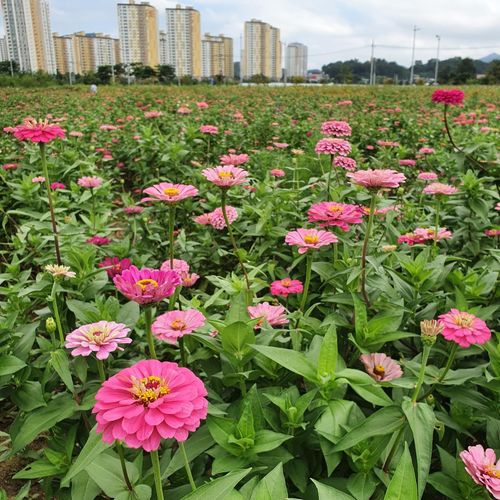 (김천=연합뉴스) 박순기 기자 = 경북 김천시는 율곡동 혁신도시 KTX역 부근에 백일홍 꽃밭을 조성했다고 11일 밝혔다.