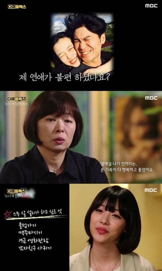 지난 10일 방송된 MBC 다큐멘터리 ‘다큐 플렉스-설리가 왜 불편하셨나요?’에는 故 설리의 친모가 출연해 최자와의 열애 이후 딸과 단절된 관계에 대해 언급했다.