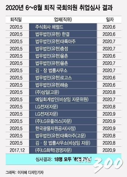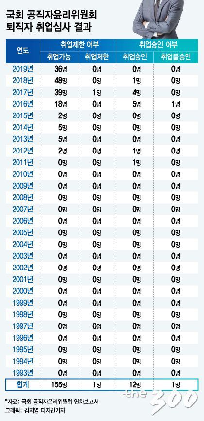 ①1993년 이후 국회 퇴직공직자 취업심사 전수조사, 올해만 18명의 국회의원 취업심사 받아