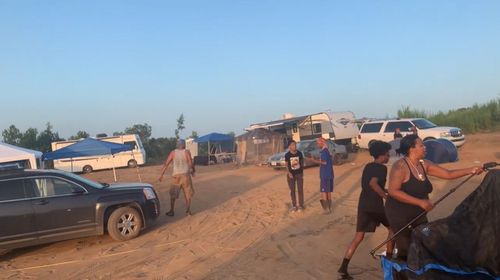 지난 1일(현지시간) '프리덤' 건설 위해 모여 텐트 설치 중인 흑인들의 모습 |