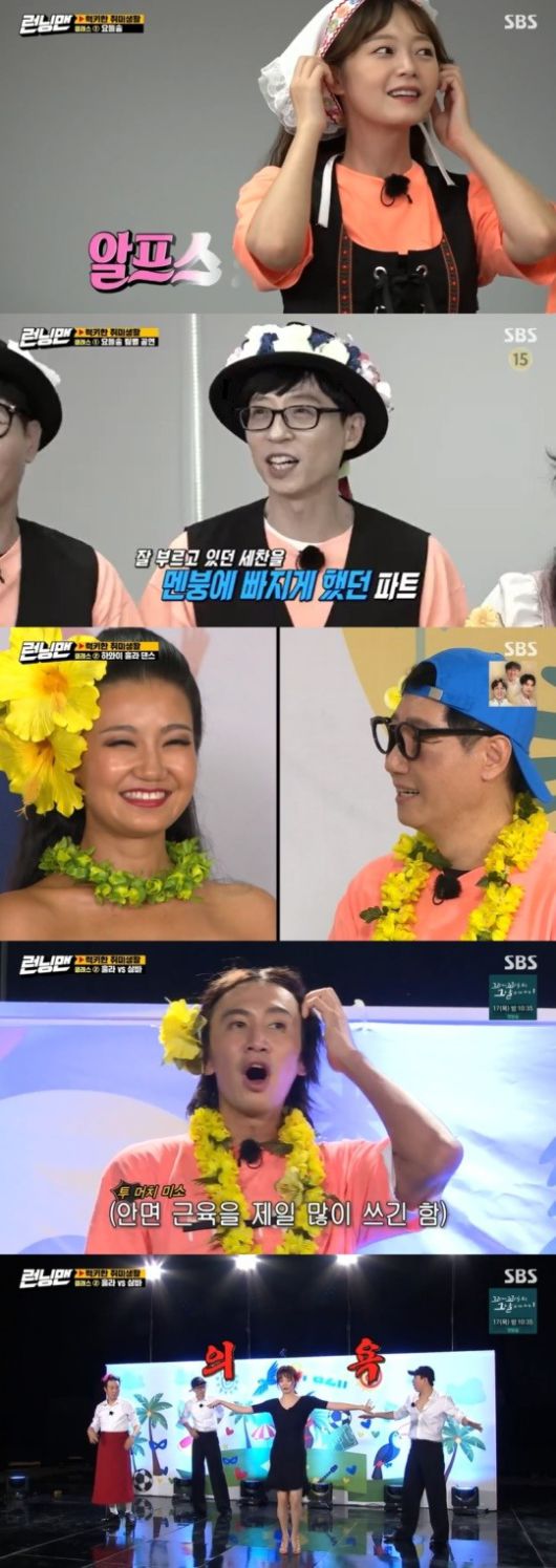 하와이팀 광수, 종국, 지효, 석진은 훌라댄스 강사 체체를 만났다. 체체는 "훌라댄스는 선조들에게 바치는 종교, 언어적 의미를 담고 있다"라고 밝히면서 훌라댄스를 선보였다. 표정이 중요한 훌라댄스에 이광수는 사랑, 기쁨, 슬픔 등 다채로운 표정을 선보여 주위를 웃음바다로 만들었다.