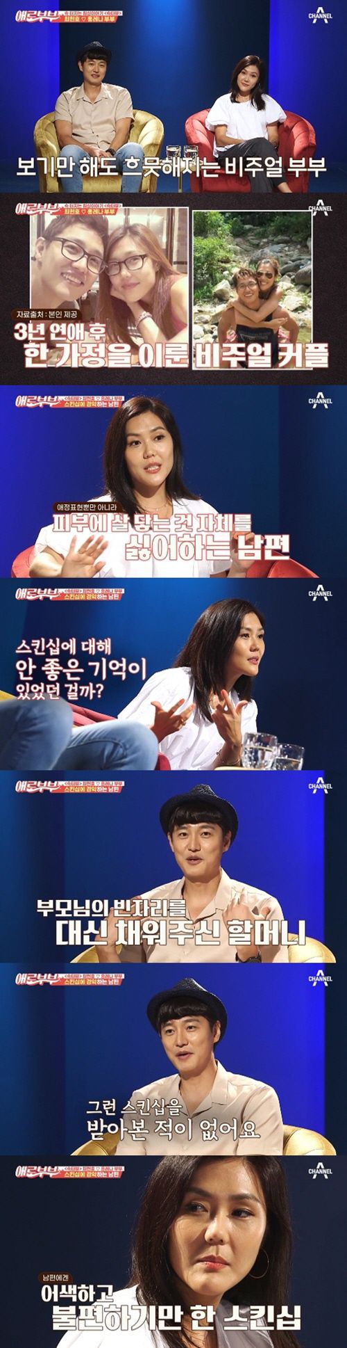 이날 '애로부부'에서 홍레나는 “남편이 스킨십을 너무 싫어한다. 그냥 살이 닿는 것도 싫어한다. 딸이 만져도 정색을 한다. 혹시 어릴 때 성추행 당한 건가 싶어서 물어보기도 했다”라며 의뢰했다.