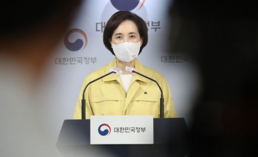 유은혜 부총리 겸 교육부 장관이 15일 정부서울청사에서 열린 브리핑에서 “오는 21일부터 수도권 지역의 등교수업을 재개한다”고 발표하고 있다. |연합뉴스 |