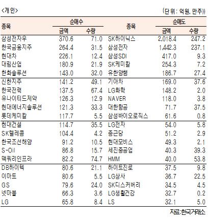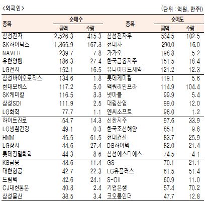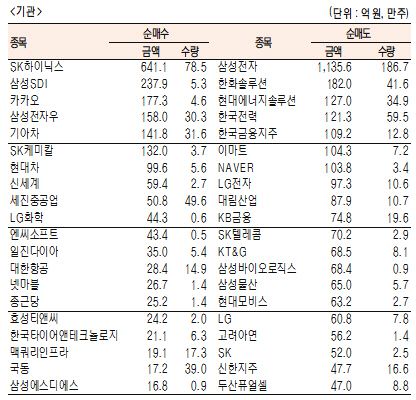 [표]유가증권 기관·외국인·개인 순매수·도 상위종목(9월 15일-최종치)
