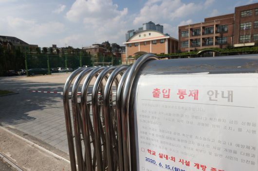 코로나19 재확산으로 인해 지난달 26일부터 ‘전면 원격수업’을 해온 수도권 지역 학교들이 21일부터 등교수업을 재개한다. 15일 오후 서울 용산구 한 초등학교에 출입통제 안내문이 붙어있다. 연합뉴스 |