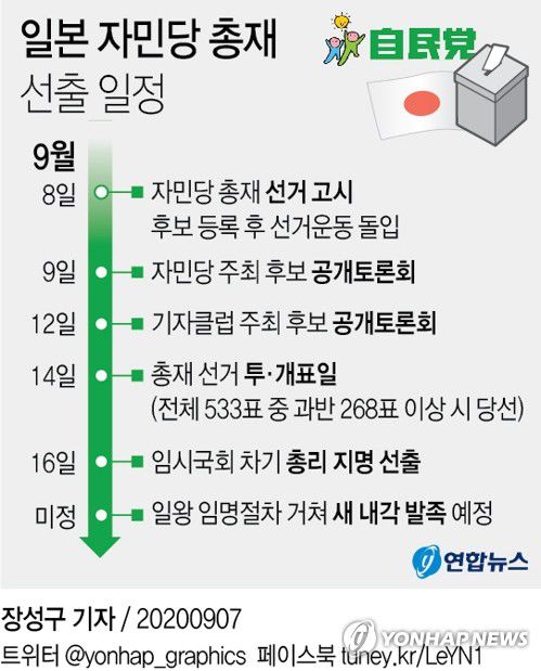 중의원과 참의원 모두 연립 여당인 자민·공명당이 과반을 점하고 있어 스가 총재는 차기 총리로 무난히 지명될 것으로 보인다.