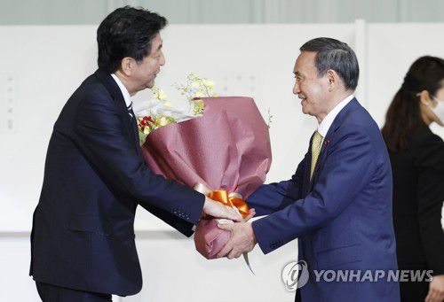 이날 오후 일본 국회에서 차기 총리로 지명되는 스가 총재도 '아베 정권 계승'을 기치로 내걸었다.