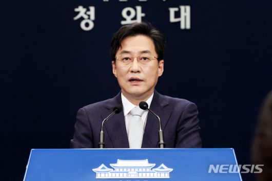 [서울=뉴시스]추상철 기자 = 강민석 청와대 대변인이 8일 오후 청와대 대브리핑 룸에서 초대 질병관리청장, 보건복지부 2차관, 여성가족부 차관 인사를 발표하고 있다. 문 대통령은 초대 질병관리청장에 정은경 질병관리본부장을, 보건복지부 2차관에 강도태 보건복지부 기획조정실장을, 여성가족부 차관에 김경선 고용노동부 기획조정실장을 내정했다. 2020.09.08. scchoo@newsis.com |