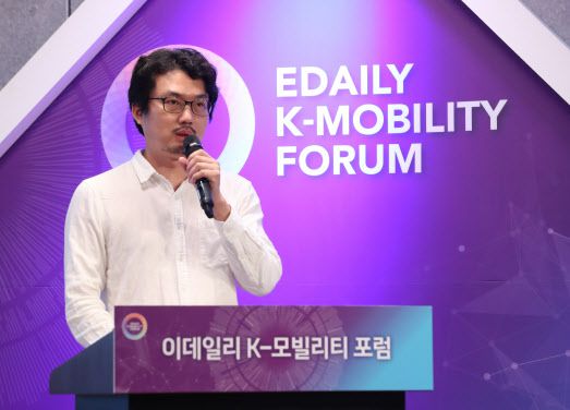 ▲이재호 카카오모빌리티 디지털경제연구소장이 16일 서울 중구 KG타워에서 열린 이데일리 K-모빌리티 포럼에서 `미래를 여는 모빌리티 서비스`를 주제로 발표하고 있다.(사진=노진환 기자) |