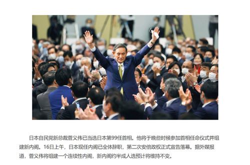 리커창(李克强) 중국 총리도 이날 스가 총리에게 축전을 보내 "중국이 일본과 함께 양국 각 분야의 우호 교류와 실무협력을 강화하기를 원한다"면서 "양국 관계에서 더 큰 발전을 이뤄야 한다"고 전했다.
