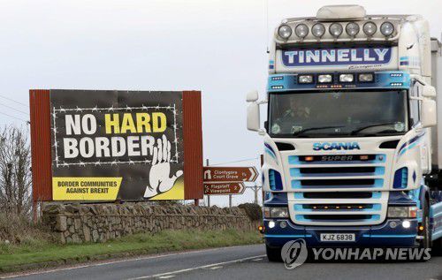아일랜드와 북아일랜드 국경을 지나가는 대형 트럭 [AFP=연합뉴스 자료사진] |