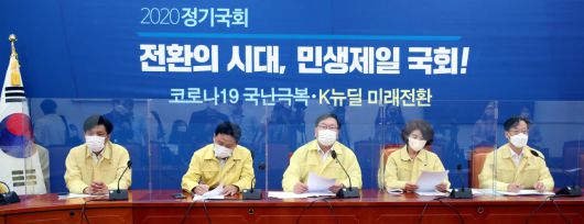 김태년 더불어민주당 원내대표가 17일 국회에서 열린 정책조정회의에서 발언하고 있다. [연합] |