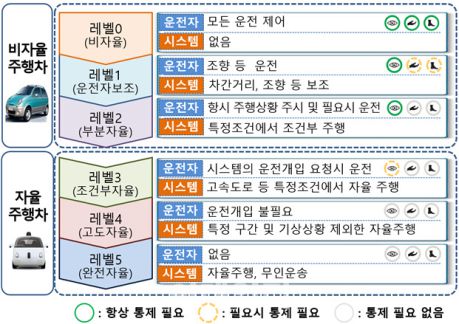 단계별 자율주행자동차 구분 (자료 : 금융위) |
