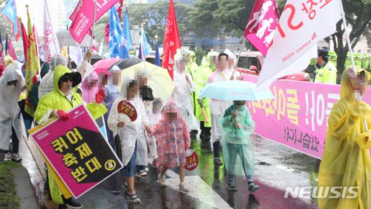【제주=뉴시스】강경태 기자 = 29일 오후 제주시 연동 삼다공원에서 열린 성 소수자 축제 제3회 제주퀴어축제에 반대하는 기독교 단체가 동성애 반대 퍼레이드를 벌이고 있다. 2019.09.28. ktk2807@newsisl.com |