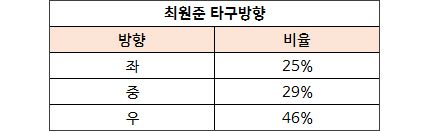 최원준은 17일 삼성과의 경기 후 인터뷰에서 “작년까지 타석에서 다운 스윙을 하려고 하다 보니 스윙이 파도를 치는 것처럼 출렁 거렸다”고 말했다. 그래서 올 시즌 캠프에서부터 정타를 때리기 위해 밑에서 위로 올라가는 슬라이트 업 스윙을 준비했다.