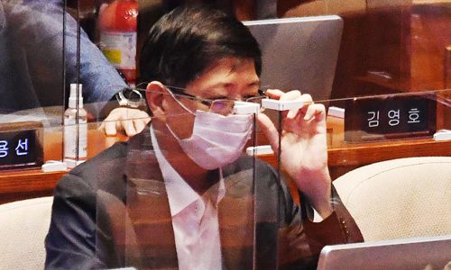 김홍걸 더불어민주당 의원이 지난 16일 국회에서 열린 경제분야 대정부질문에 참석해 자리하고 있다. 뉴스1 |