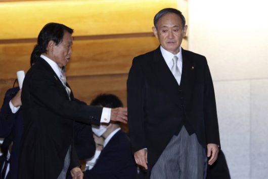 그는 스가 총리의 지명선거가 열린 16일 중의원 본회의에 참석해 투표했다. 스가의 총리 당선이 확정되고 나서는 주먹인사 방식으로 축하 인사도 나눈 것으로 알려졌다. 또 아베 전 총리가 이임 인사를 하러 다닐 때에는 니카이 도시히로 자민당 간사장과 함께 맞이하기도 했다.