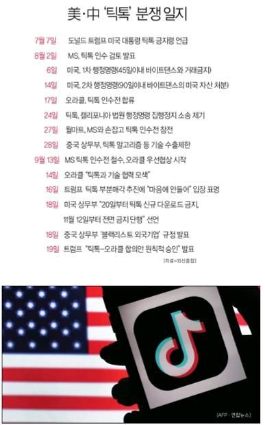 트럼프 대통령의 합의안 승인 직전까지 미·중간 기싸움도 계속됐다. 오라클과의 합의로 일단락된 줄 알았는 데, 트럼프 대통령은 16일 돌연 "마음에 들지 않는다"며 어깃장을 놓기도 했다. 이어 18일 미국 상무부는 예고한 대로 "20일부터 틱톡을 금지할 것"이라고 선포하며 중국을 압박했다.