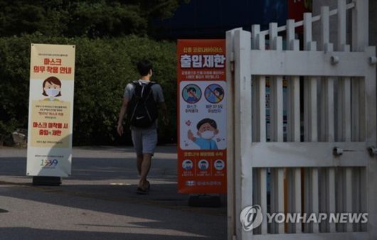서울 용산의 한 고등학교 교문에 신종 코로나바이러스 감염증(코로나19) 확산 방지 안내 수칙 관련 안내문이 세워져 있다. [사진 연합뉴스] |