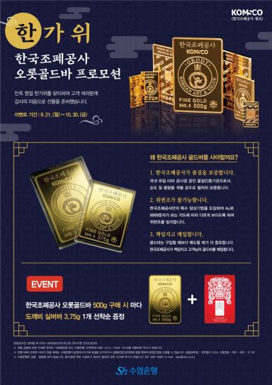 [아시아경제 김민영 기자]Sh수협은행과 한국조폐공사가 추석을 맞아 ‘한가위 맞이 골드바 판매’ 프로모션을 시행한다고 21일 밝혔다.