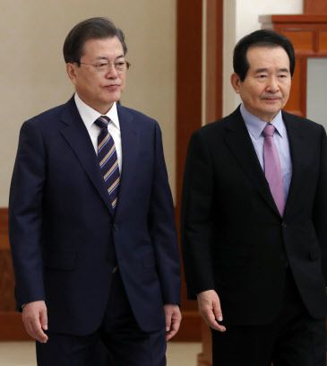 문재인 대통령과 정세균 국무총리. 뉴시스 제공 |