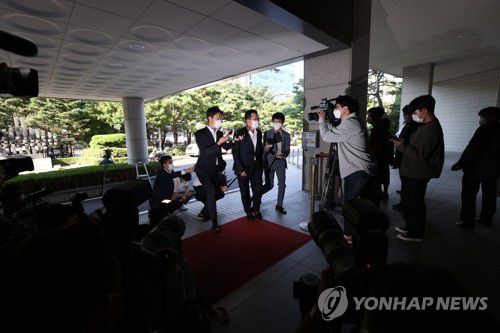 (서울=연합뉴스) 임화영 기자 = 20대 국회 패스트트랙(신속처리안건) 충돌 사태로 재판에 넘겨진 이장우 전 자유한국당(현 국민의 힘) 의원이 21일 오후 서울 양천구 남부지법에서 열린 첫 공판에 출석하고 있다. 2020.9.21 hwayoung7@yna.co.kr <저작권자(c)연합뉴스. 무단전재-재배포금지.>