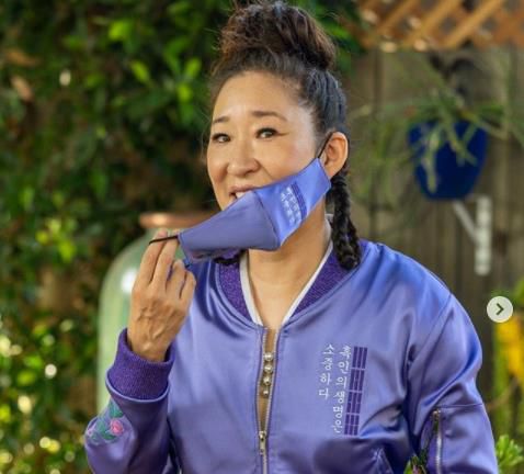 한국계 배우 샌드라 오가 입은 한글 점퍼 |