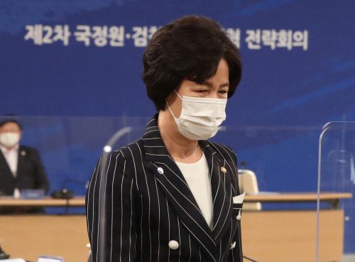 제2차 국정원·검찰·경찰 개혁 전략회의에 참석한 추미애 법무부 장관.(연합) |