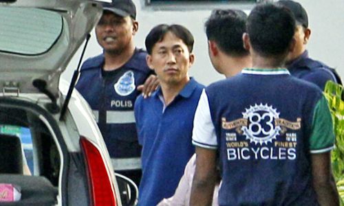 리정철 연행 김정남 암살 사건 용의자로 2017년 2월18일(현지시간) 말레이시아 경찰에 체포된 북한 국적의 리정철(또는 리종철·46·왼쪽 두 번째)이 조사받기 위해 쿠알라룸푸르 세팡경찰서로 연행되고 있는 모습. 쿠알라룸푸르=연합뉴스 |