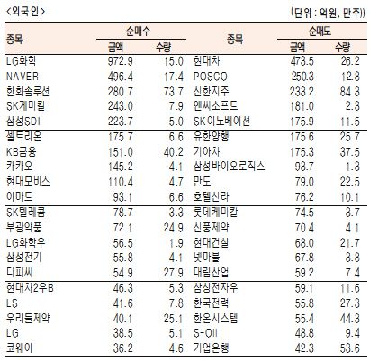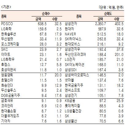 [표]유가증권 기관·외국인·개인 순매수·도 상위종목(9월 22일-최종치)
