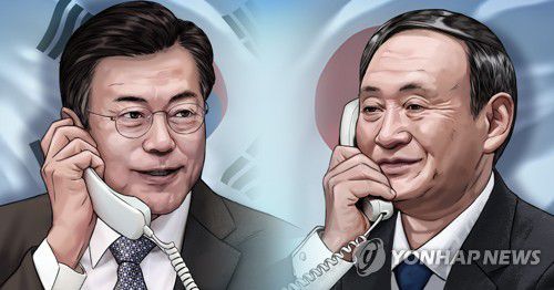 보도에 따르면 문 대통령과 스가 총리 사이의 전화회담은 24일 오전에 진행하는 방향으로 조율 중이다.