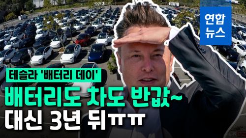 (서울=연합뉴스) 미국 전기차업체 테슬라의 최고경영자(CEO) 일론 머스크가 22일(현지시간) 배터리데이 행사를 통해 반값 배터리와 완전자율 주행차 계획을 공개했습니다.
