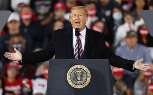 22일(현지시간) 블룸버그통신에 따르면 트럼프 대통령은 이날 펜실베이니아주 피츠버그 국제공항에서 열린 유세에서 “바이든 후보가 성형수술을 하고 마스크로 이를 가렸다”고 말했다. 그러면서 “솔직히 마스크로 얼굴을 가릴 거면 대체 성형수술에 돈은 왜 쓴거냐”고 비꼬았다.