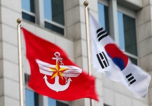 서울 용산 국방부 청사에 내걸린 태극기와 국방부기. 연합뉴스 |