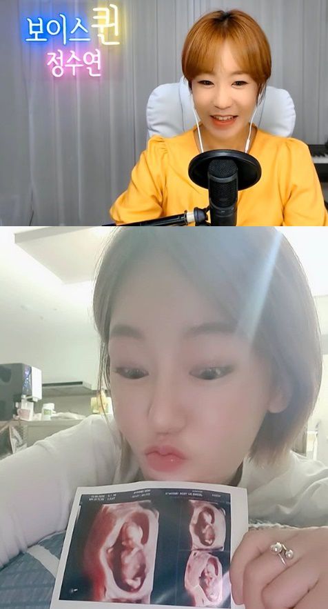 정수연은 “2세는 계획하지 않았는데, 제주도로 1박2일 여행 가서 생겼다. 예정일이 4월 3일이다. 아직 임신 초기라서 안정기가 되면 말하려 했는데, 팬클럽 회원들 사이에서 ‘왜 안 먹던 과일청을 먹냐’ ‘왜 금주를 하냐’며 수상하단 글들이 난무했다. 더 이상 피할 수 없어 제 유튜브 방송에서 말한 것”이라고 웃었다.